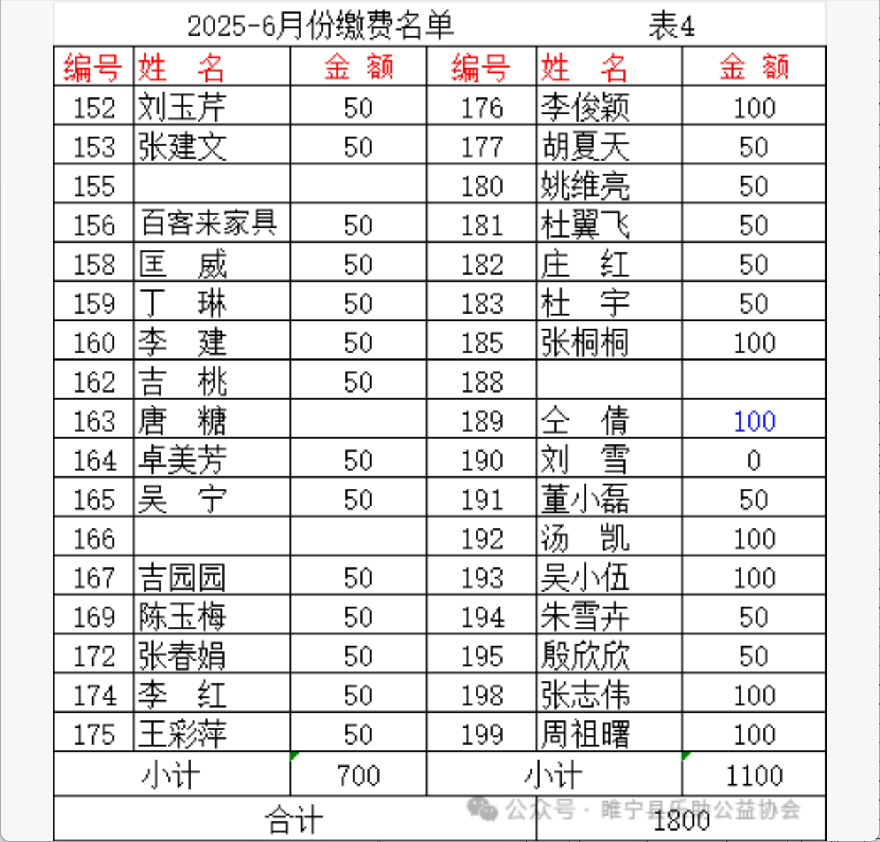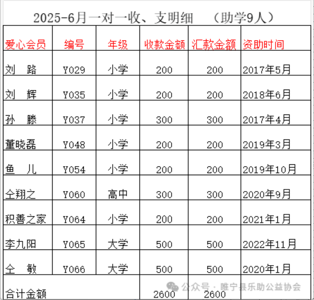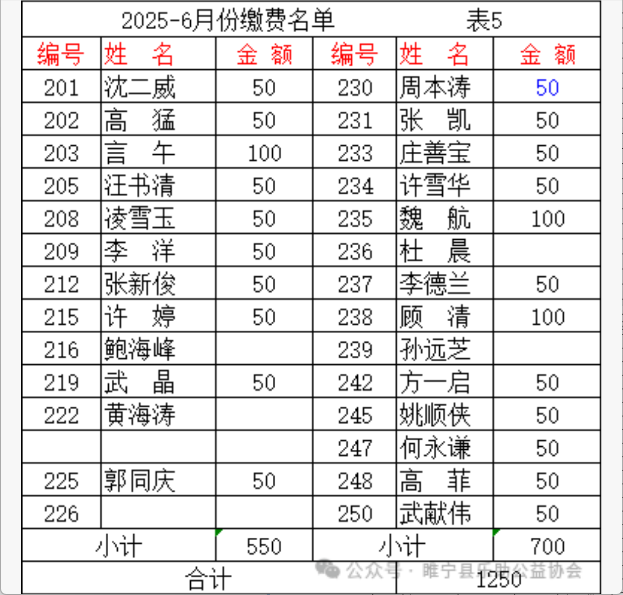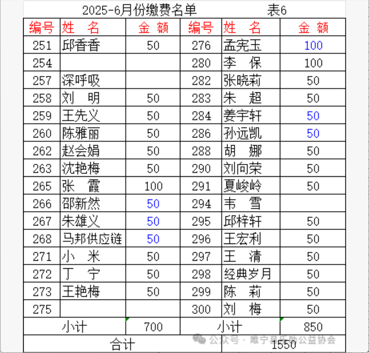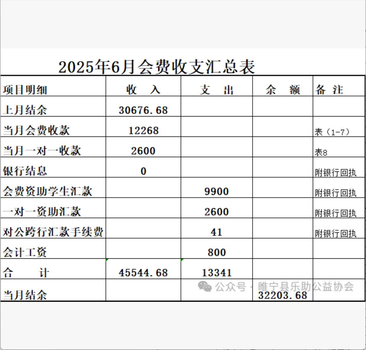 2025年6月会费收支汇总表
