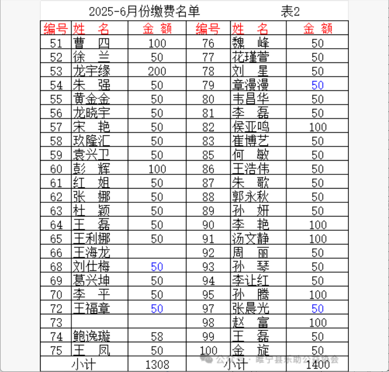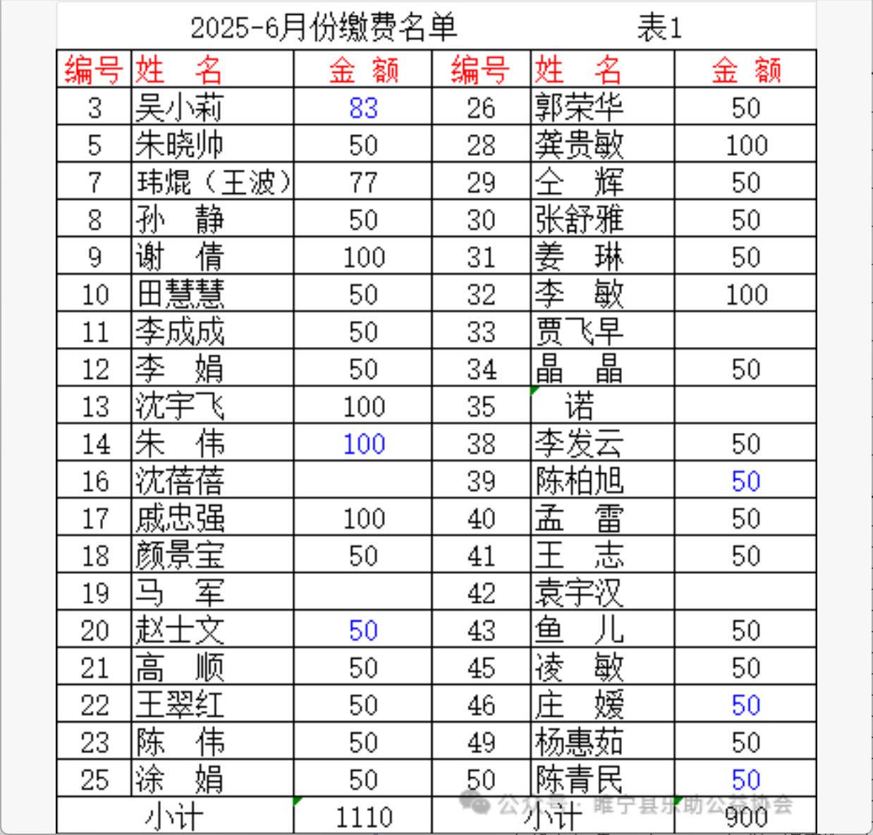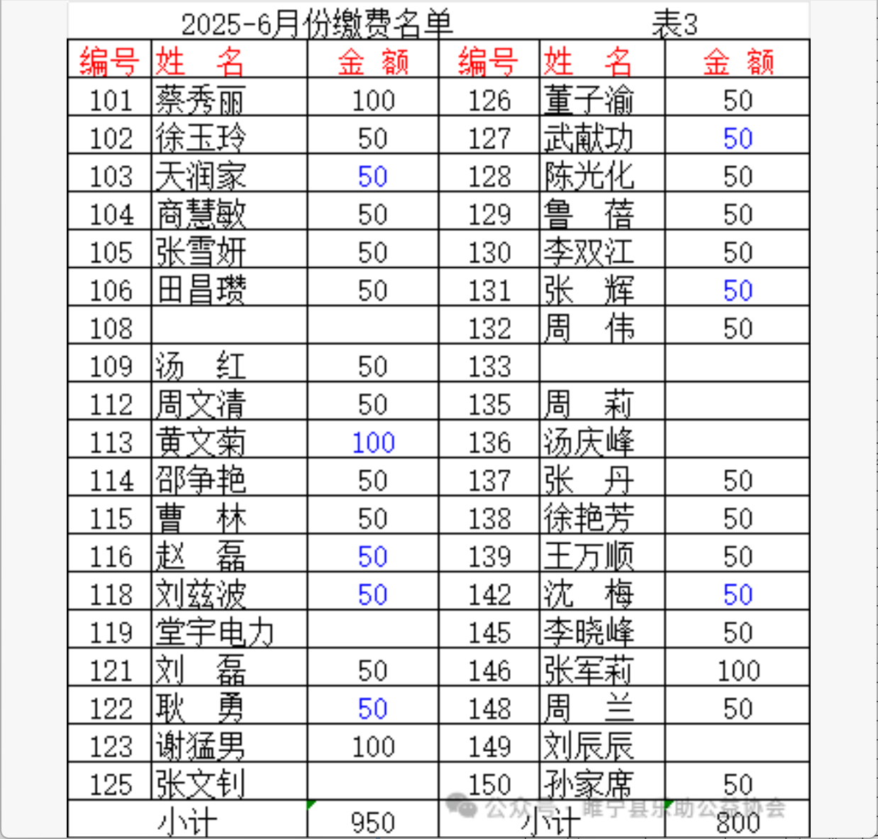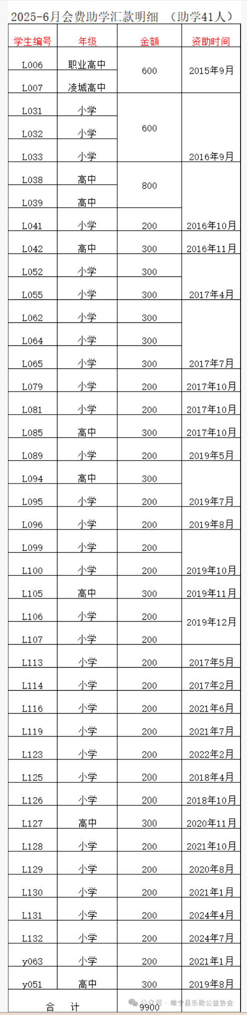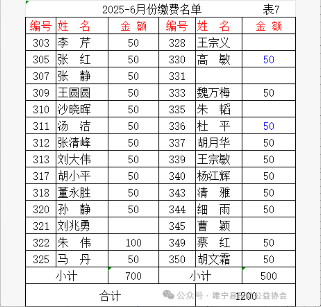 2025年6月会费收支汇总表