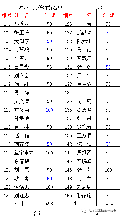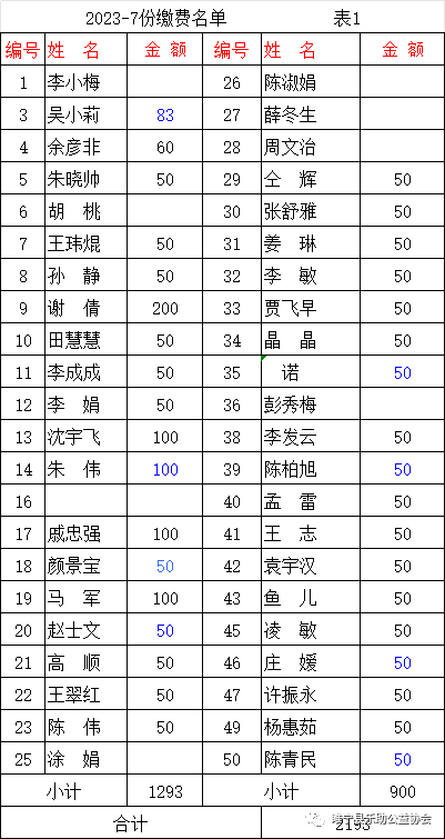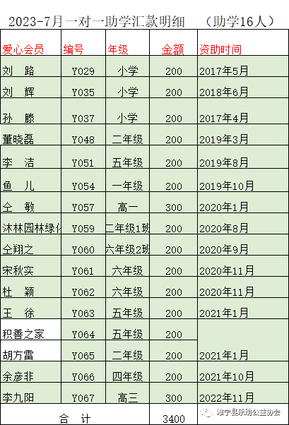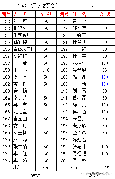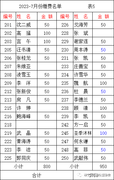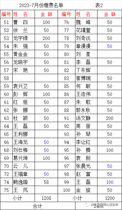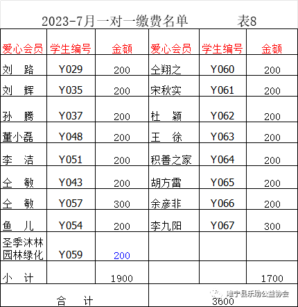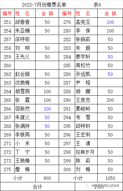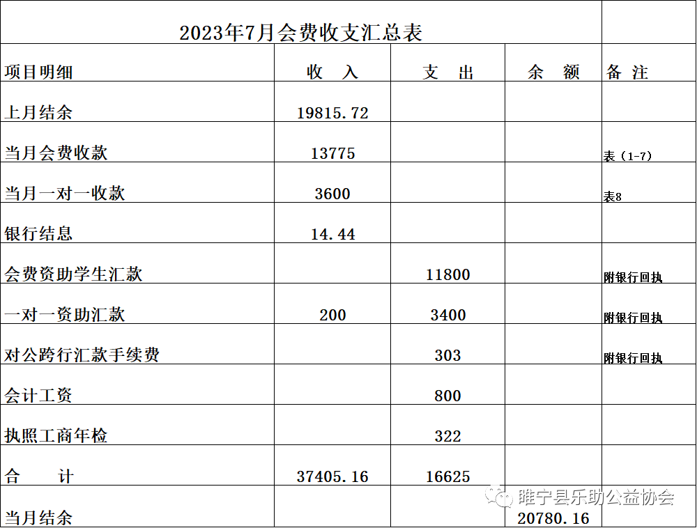 2023年7月会费收支汇总表
